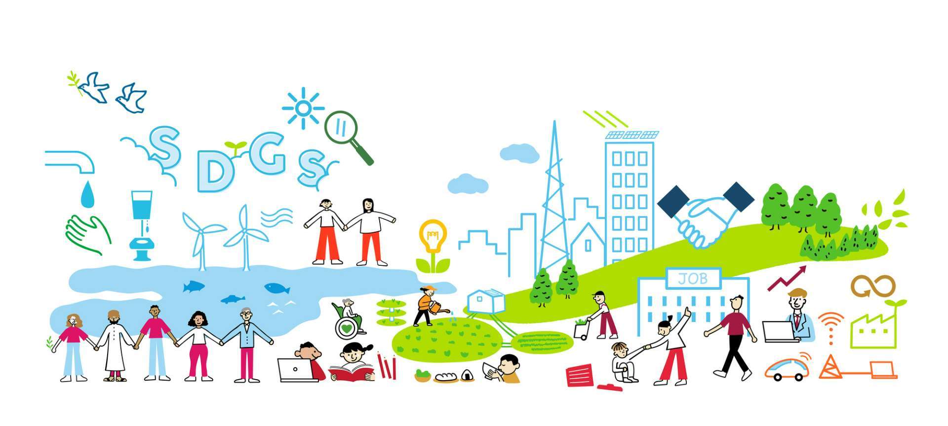 SDGs達成に向けたNHSの取り組みは、環境に関することだけではありません。GOAL4「質の高い教育をみんなに」、GOAL5「ジェンダー平等を実現しよう」、GOAL8「働きがいも経済成長も」、GOAL10「人や国の不平等をなくそう」の達成を目指した職場環境作りも行っています。主な取り組みをご紹介します。